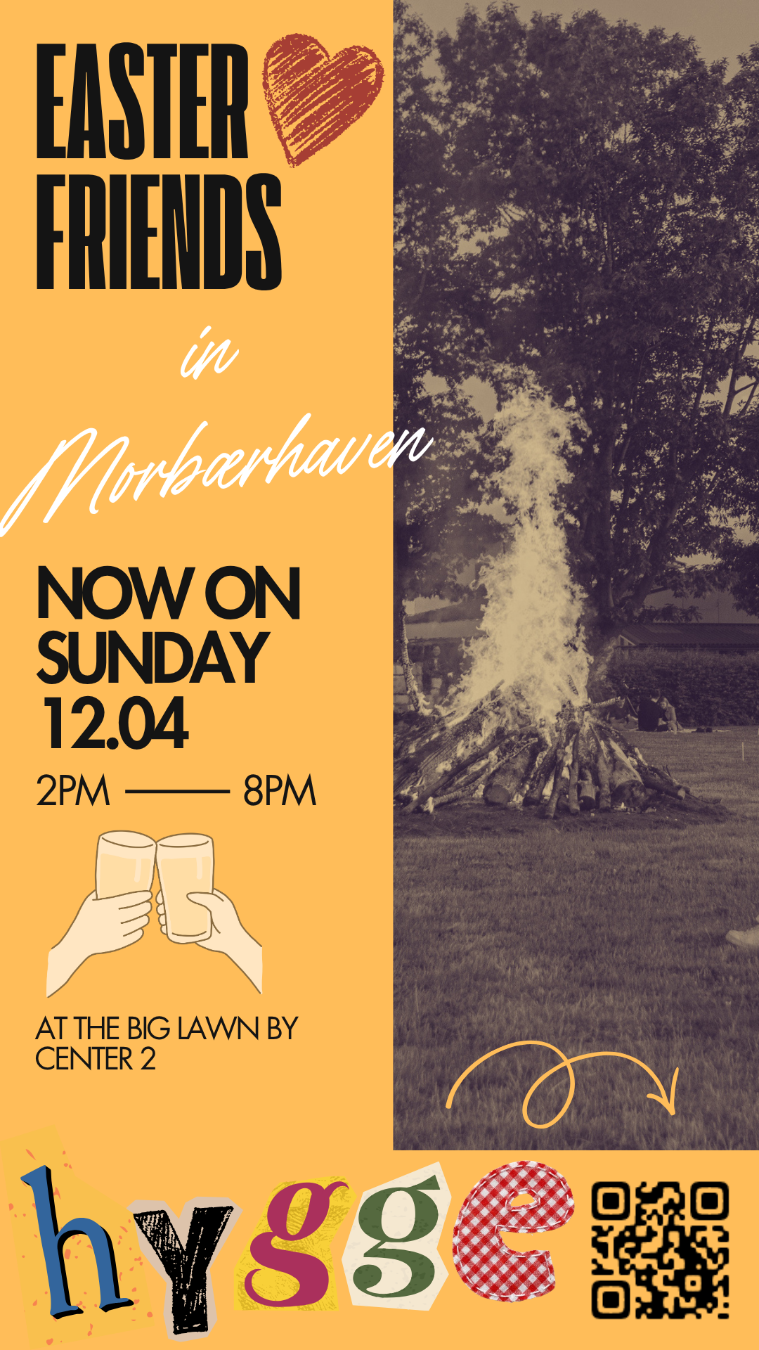 Søndag d. 12. april inviterer vi til en hyggelig påskeeftermiddag og -aften i Morbærhaven. Arrangementet foregår på den store græsplæne ved Center 2, hvor vi samles til fællesskab, hygge og god stemning. Fra kl. 14–18
